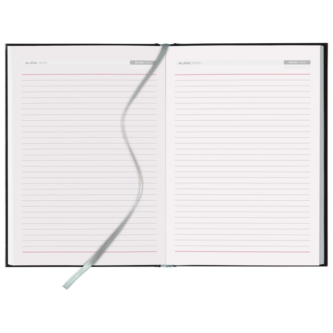 može se koristiti više godina; knjižni blok: 224 stranice (sa adresarom); 70 g/m²; bijeli papir; korica je izrađena od materijala koji je pogodan za: sitotisak, suhi žig, foliotisak zlatni/srebrni i foliotisak u boji