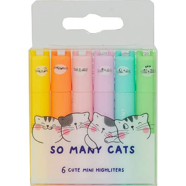 Tekst marker M&G So many cats mini fluo pastel AHM-22575 6/1 – nakošeni vrh za lakše podcrtavanje – brzosušeća tinta – dimenzije: 67 x 74 x 12 mm – barkod: 6941255144290